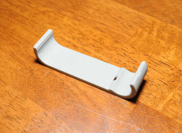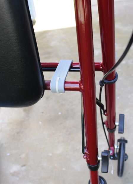 Aunque el diseño es extremadamente simple, el resultado es un aumento grande en usabilidad para el paciente. Y la parte impresa 3D hace la diferencia, también. Originalmente hice un retén temporal de alambre de colgador de ropa. Funcionó, pero la versión impresa 3D más fácil de utilizar y no sonajero cuando el andador se desplaza.