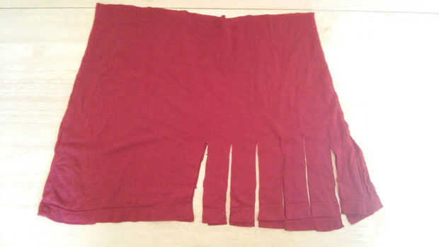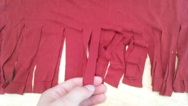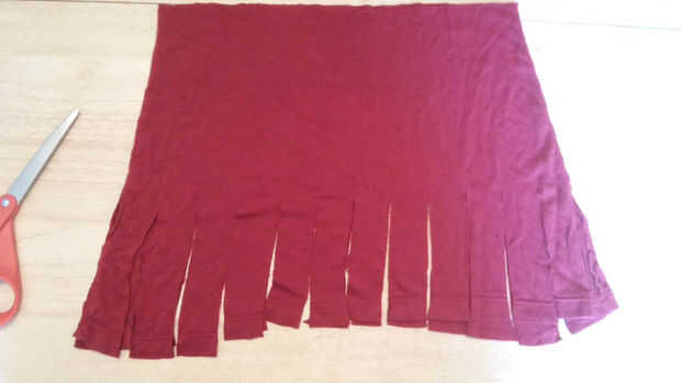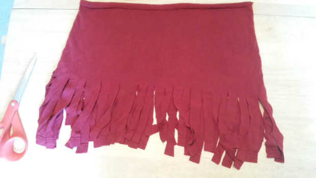 Cortar hilos aproximadamente 1/3 de la manera encima de la tela. Durante mucho tiempo lo suficiente como para ser notado, pero corto bastante se que no domine la bufanda.
