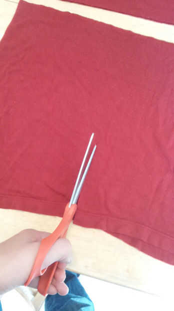 Nota: empecé cortando aproximadamente 1" gruesos hilos. Esto terminó haciendo la bufanda pone extraño y buscar voluminosos así que corte los hilos para ser 1/2" de grosor en su lugar. Esto crea una mejor apariencia general. Usted puede elegir hacer los hilos ya sea más grande o más pequeño si te gusta.
