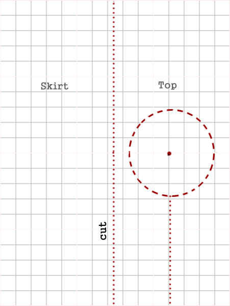 - Trazar una línea desde el pequeño círculo hasta el borde más cercano de la tela