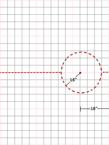 - Usando una cadena atada a un lápiz, haga un círculo con un radio de 16" desde el punto que marcaste.
