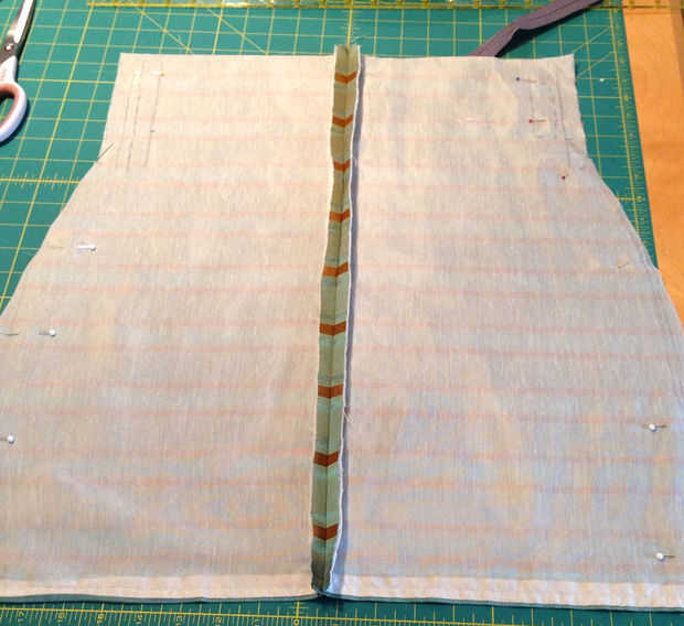 - Con el derecho, coser el centro de arriba a abajo con un margen de costura de 1/2". Planche la costura plana.