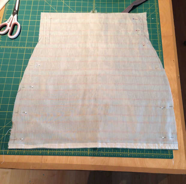 - Perno de la parte delantera de la falda en la parte posterior, lados del derecho juntos.