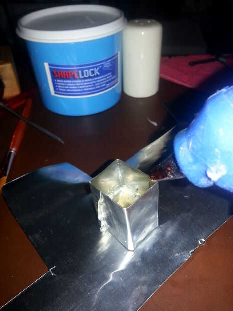 Tomar algo de su aluminio y utilizar para formar una caja que se ajuste alrededor de su maestro valle. He encontrado que utilizando la regla para doblar el metal alrededor es una manera rápida y fácil para hacer la caja. Con cuidado coloque el valle con la muesca hacia arriba en la parte inferior de la caja de metal y coloque el conjunto sobre una superficie resistente al calor.