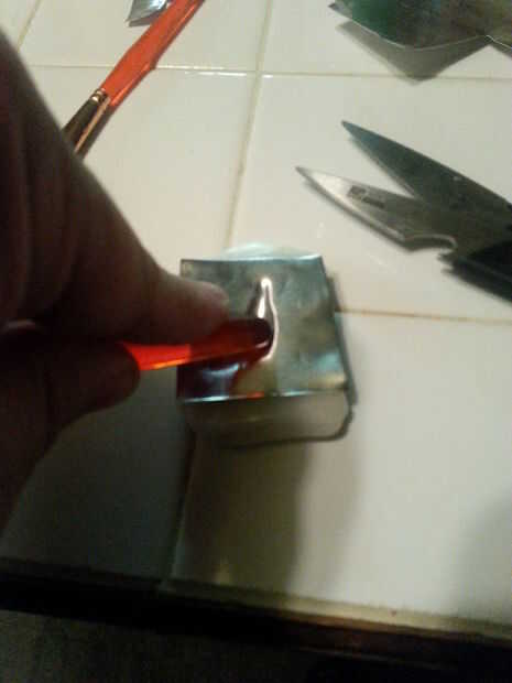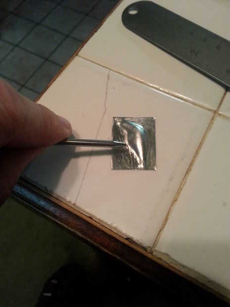 Cortar un trozo de aluminio a un 2 en X 2 cuadrados. Colocar sobre el molde y usando la parte posterior de la brocha grande, trabajar la lámina en el molde de como va a ir. Cambiar el cepillo de diámetro más pequeño y trabajar más. Utilice el lado del pincel para pliegue el borde superior del valle, frotando desde el borde del valle hacia fuera al borde de la hoja. Una vez que su hecho, pop out y recortar la pieza con el tamaño correcto. Comience por cortar a lo largo del lado derecho del valle, que se extiende hacia fuera alrededor de un cuarto de pulgada. Corte en la parte inferior de una pulgada y luego a la izquierda. Medida de 1,25 pulgadas y corte en la parte superior. Coloque el valle boca abajo sobre una superficie lisa y utilice el termómetro para carnes para suavizar el perímetro del valle. Con tus tijeras, alrededor de las cuatro esquinas. Harán un par tijeras pequeñas. A continuación, obtener su regla. Sostener la regla con la mano derecha, así como el borde derecho de la pieza de Valle. Alinee la pieza de modo que el borde de la regla de la esquina inferior derecha de la pieza de valle al valle sí mismo en un ángulo de 45 grados. Con el pulgar izquierdo, biselado del borde inferior del Valle de unos pocos grados, girar a la pieza de Valle para que el lado derecho del valle del es ahora encima de la regla. Sostenga la pieza que con su pulgar derecho y empuje la pieza de valle hacia atrás ligeramente para que el borde en bisel. Agarra el área plana a la izquierda del valle entre el pulgar y el dedo índice y rodar un poco, como si se tira una factura de un fajo de dinero en efectivo.