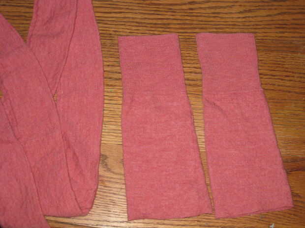 3. cortar las mangas de la chompa. Mida con su propio brazo haciendo Asegúrese de dejar suficiente longitud para el pun ¢ o del doblez (donde van los dedos) por la mitad y un poco extra para doblar sobre el brazo, tanto o tan poco como desee.