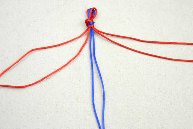 2 º, pliegue los hilos en la mitad, dejar un cm 2 lazo encima y atan un nudo por debajo;