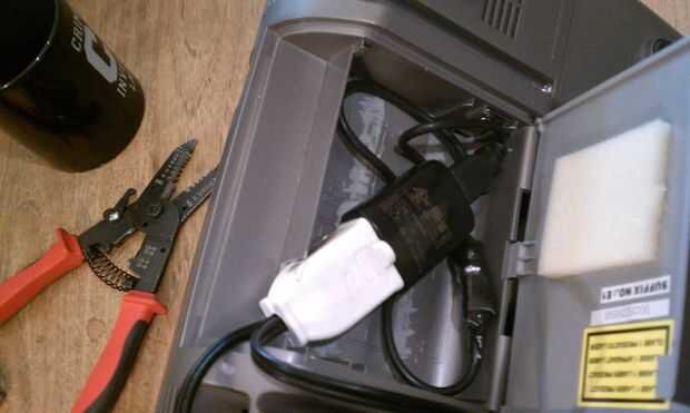 Por cierto, también tuve que cortar una muesca de la tapa de la pila para hacer espacio para el cable de alimentación cuando la puerta está cerrada.