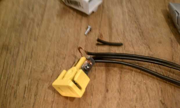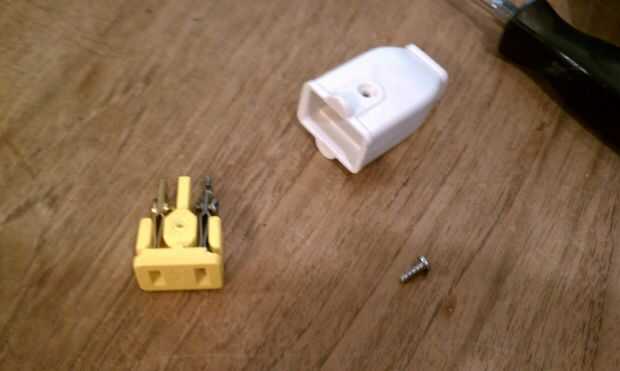 Una vez que tengas los cables pelados, deslice la tapa del enchufe (la parte blanca) del cable y los cables pelados del lazo sobre los terminales de la clavija.