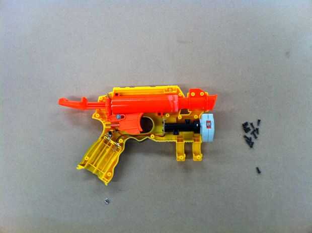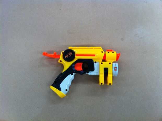 pistola Nerf A es, simplemente, una pistola de juguete de plástico que dispara espuma dardos. Sin embargo, el arma no es tan fuerte lo suficiente como nos gustaría, y fuera de caja, realiza en ninguna parte cerca de su capacidad. Hasbro ha instalado