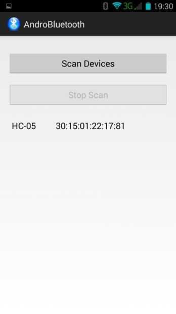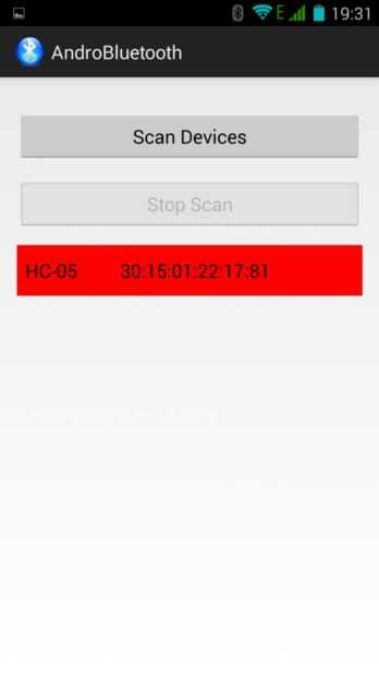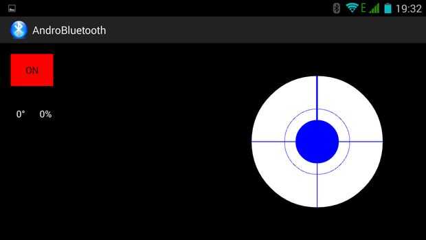 Debe instalar el BTcommander.apk desde esta página. Establecer el "origen desconocido" en el elemento de seguridad de la configuración de su smartphone. Puedes ver aquí algunas captura de pantalla de la aplicación: en primer lugar la aplicación activar el bluetooth (si no anterior habilitado). La primera actividad (pantalla) muestra sólo un botón activado: "Buscar dispositivos". Después se presiona la búsqueda de la aplicación de dispositivos bluetooth Si algo está habilitado el botón "Stop Scan", presiónelo y será mostrar una lista con nombre y mac la dirección de los dispositivos encontrados. En este punto Pulse sobre un dispositivo en la lista y va a cambiar la actividad (pantalla): sobre un fondo negro hay un botón (Pulse para conectar el dispositivo) y un joystick virtual con un disco azul en el medio. Mover el disco dentro de la blanco el coche se moverá en la dirección seleccionada con la velocidad seleccionada. Liberar el disco azul el coche se parará. Esta aplicación enviar al receptor bluetooth HC-05 una cadena con información sobre ángulo y power(speed) para aplicar en el modelo del coche (consulte paso 5 - el software de arduino).