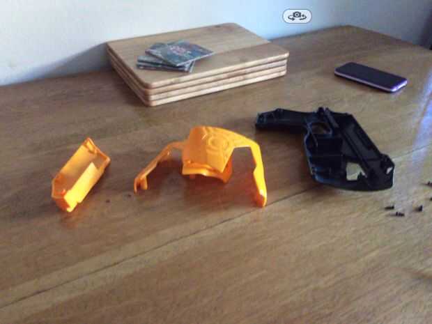 Primero quiere desenroscar todos los tornillos de la pistola de Nerf y sacar toda la parte de aceptar piezas del armado amarillo poco en la parte posterior o de lo contrario se debe reajustar el mecanismo de armado que toma edades: p