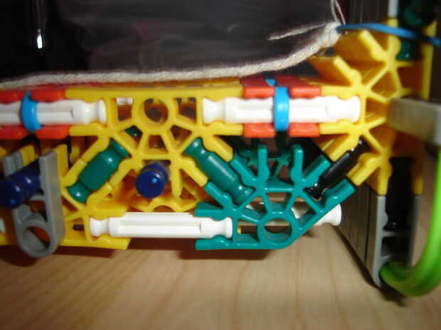 esta es el arma más poderosa de K'NEX creo que porque puede perforar 2 cerveza o COLA puede y destruir disco compacto fácilmente debido a la muy fuerte 4 gomas (yo uso 2 ligas diferentes) también incluye una gran revista para 5 K'NEX largo gris afila