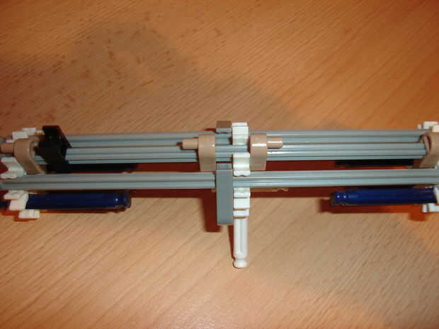 esta es el arma más poderosa de K'NEX creo que porque puede perforar 2 cerveza o COLA puede y destruir disco compacto fácilmente debido a la muy fuerte 4 gomas (yo uso 2 ligas diferentes) también incluye una gran revista para 5 K'NEX largo gris afila