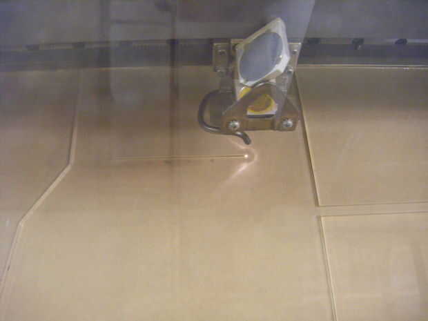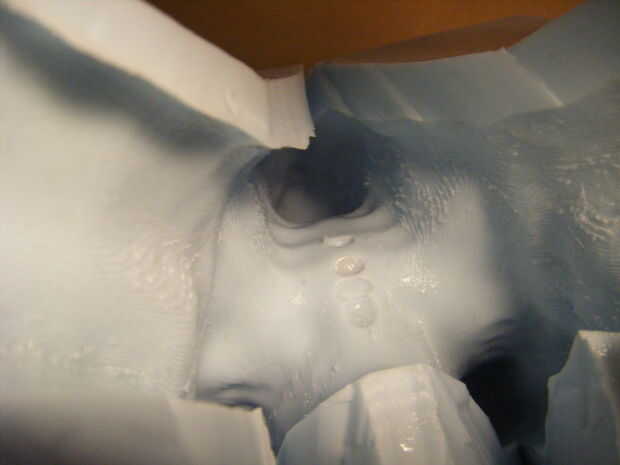 diseñé la caja de moldeo de Rhino alrededor de los modelos y si fabricado desde láser corte acrílico. Esto me permitió colocar con precisión puntos de registro en la caja de moldeo que base y escultura. Me adjunto la escultura a la caja de moldeo, selló y medir el volumen interior con agua así que sabía cuánto silicona mezclar para el molde. Después de secar bien el cuadro y la escultura, derramé la silicona. Mientras que el doble check de fugas, me di cuenta de que la escultura estaba flotando en la silicona. Tenía que verter la silicona vuelve a salir y volver a montar la escultura utilizando un par de tornillos. Derramé la silicona en y que fijó para las 18 horas.