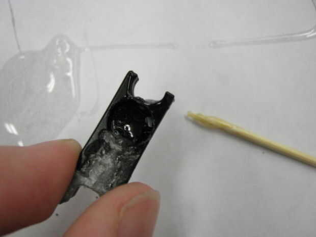 2. Ahora utilizar un palillo para poner un poco de pegamento epoxi en cada agujero