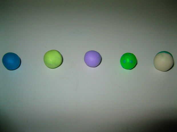 Para formar los cuerpos de los cerdos rodar una pequeña cantidad de arcilla en una bola para cada uno. No tienes que hacer solo colores y ellos pueden hacer cualquier tamaño que desee.