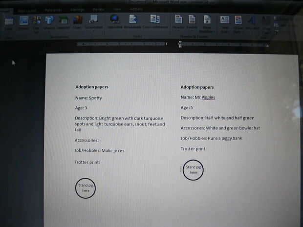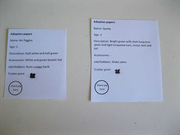 Para hacer sus cerdos adopción papeles tipo impresa y en un procesador de texto o escribir con lápiz y papel. Puede incluir los detalles son: