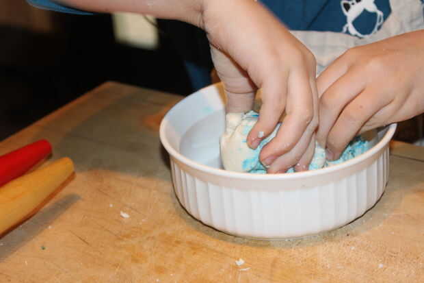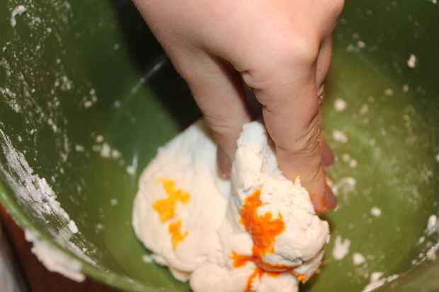 4. arcilla será blanco. Se puede pintar después se seca o se puede añadir colorante... amasar hasta mezclar.