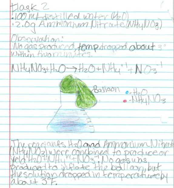 El aparato físico era el mismo en cada situación. Un reactivo (ingrediente) se midió en un erlenmeyer pequeño, he usado matraces de 125 mL y el otro dentro de un globo. Entonces el balón fue estirado sobre la boca del frasco y el reactivo en el balón con punta en el frasco. El globo y el matraz luego crean un sistema cerrado para capturar cualquier productos creados durante la interacción de los reactantes.