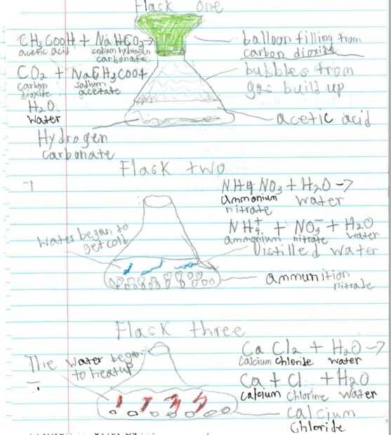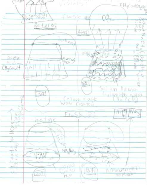 Matraz 1: carbonato ácido de sodio y ácido acético (también conocido como bicarbonato de sodio y vinagre)