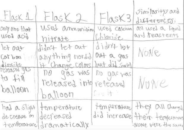 En este experimento, al principio del curso química pedí estudiantes químicos se combinan de tres maneras diferentes y luego comparar y contrastar sus observaciones de los frascos con la idea de que pueden determinar si una reacción química ocurrió en cada caso.