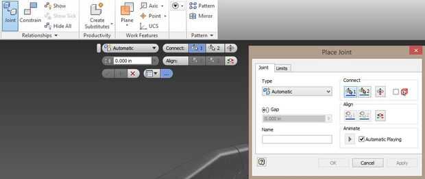 Asambleas: Cuando usted tiene un montón de piezas guardadas, puede crear un nuevo archivo de ensamblado. Desde aquí usted puede "colocar" todas sus partes en un archivo y o bien disponerlas a mano, o conjunto de juntas. Jugar con las articulaciones mediante la selección de dos caras que interactuarán entre sí en las partes.