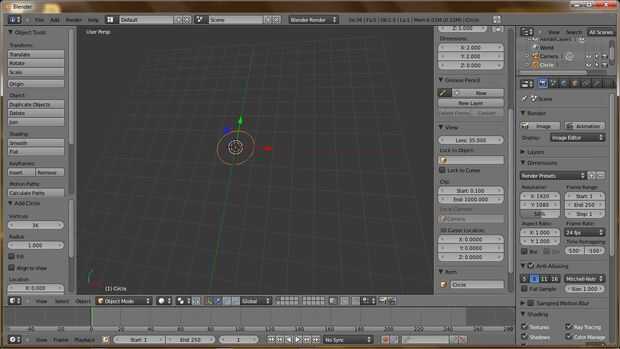 Haga clic en Agregar = > malla = > círculo. En la parte inferior izquierda debe ver "Añadir círculo". Hacer que este círculo tiene 36 verticies y cualquier radio.