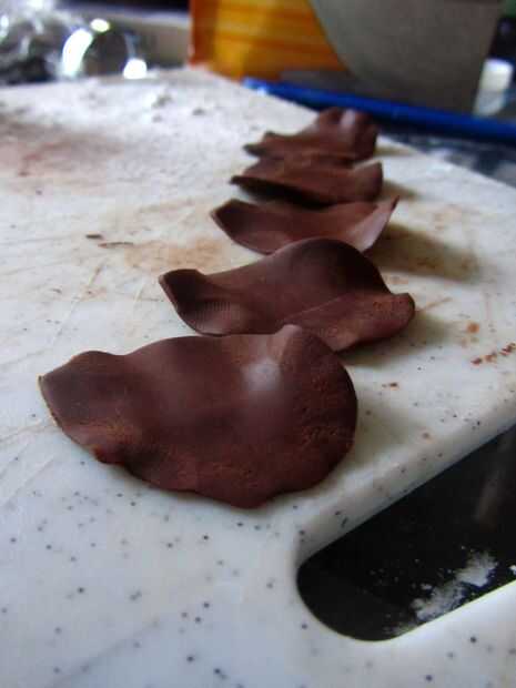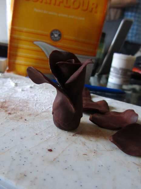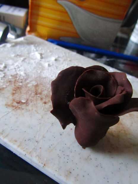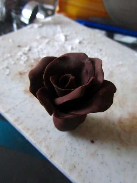 Cuando la rosa es tan grande como quieras, pellizque cualquier exceso en la parte inferior y alisar sobre. Hacer los ajustes finales para la conformación y la posición de los pétalos antes de los juegos de chocolate.