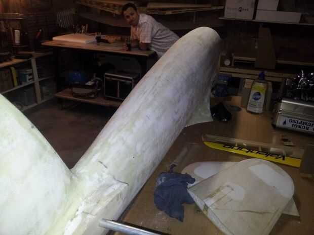 Primero pasamos unos días lijado de todo el compuesto de juntas a la puñalada los filetes y filetes de ala. una vez que fue hecho medimos el fuselaje y aplica una capa de resina de paño y epoxi de vidrio 161grm. Todos los bordes donde limpió mientras la resina aún alcanzaba toda su fuerza.