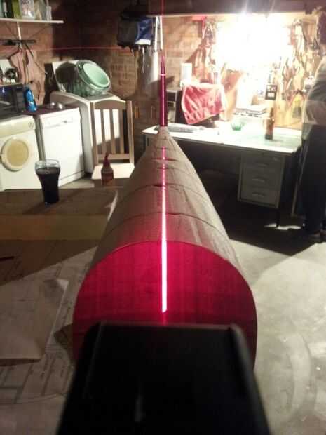 Entonces después de rastro de montaje de las cuadernas a la barra, cortamos espuma de tamaño similar, esto es reciclado de casa, así que si no cabe todo lo hicimos trabajar. Durante el proceso de encolado utiliza y la vieja técnica con una cadena para enderezar el fuselaje. Si fue golpe y miss y compró un nivel láser. Utilizando un nivel láser todavía tomó unos 40 minutos a todo antes de que feliz. Una vez hecho esto fue todo, donde roscado y pegado a la barra usando normal PVA blanco pegamento.