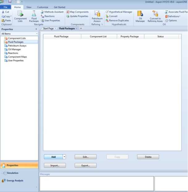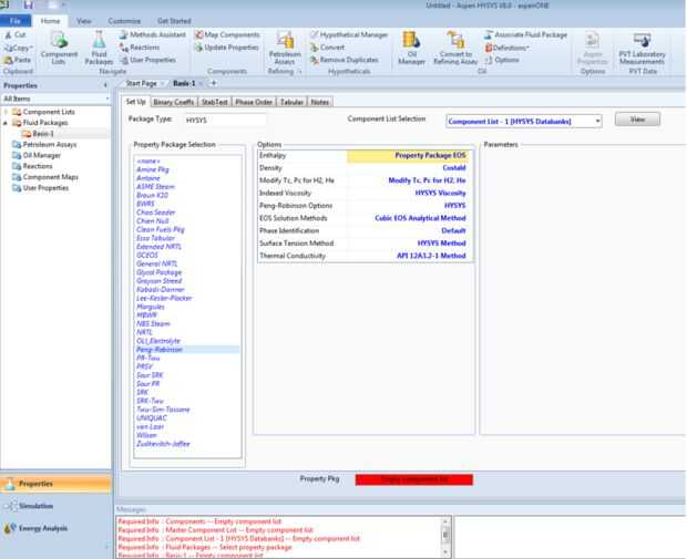 El paquete de fluidos más comúnmente utilizado es Peng-Robinson. Para este tutorial también utilizaremos a Peng-Robinson, sin embargo, si su sistema se sabe que el mejor seguir una ecuación de estado diferente, seleccione el modelo correspondiente.