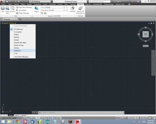 Para elegir cómo AutoCAD muestra el modelo (dibujo de línea sólida,) Seleccione en el menú de estilos visuales .