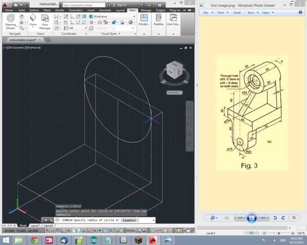 - dibujar un círculo desde el centro del cilindro con un radio de 15