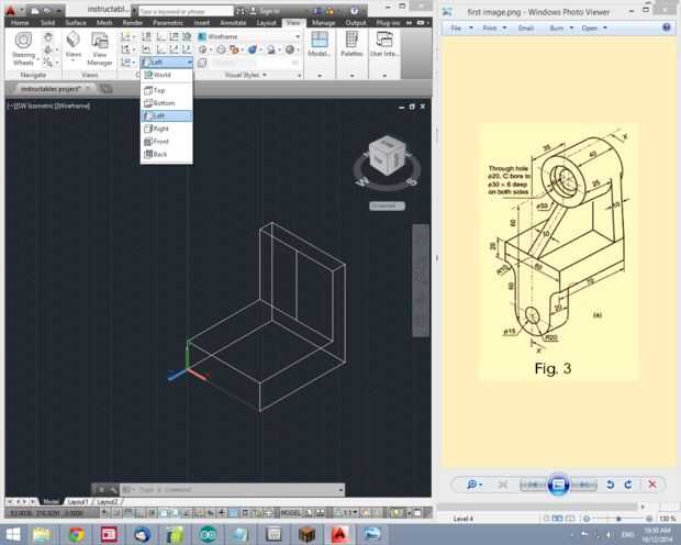 - cambiar el UCS (sistema de coordenadas universal) a la izquierda. Esto nos permitirá dibujar fácilmente objetos orientados a este plano. Para hacer esto: