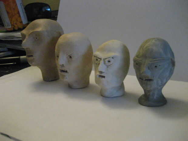3)... primer intento utilizando el compuesto blanco / suave (también), más pequeño cráneo más redondeado... un pequeño "bug eyed"