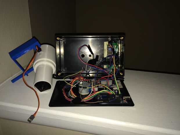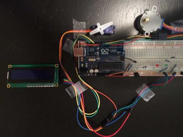La parte final del proceso es montar todos los componentes juntos. Por encima está el trazado de circuito para mi modelo y donde los cables se conectan a la placa. Una vez que tengas el circuito todos establecido, necesita para luego armar los componentes mecánicos. Para mi proyecto, 3-d imprimí un eje que va desde el motor hasta el telescopio, pero también Unido el motor servo para el telescopio. Dependiendo de cómo desea personalizar su cámara y su mecanismo, el producto final puede ser muy diferente y el diseño depende de ustedes.