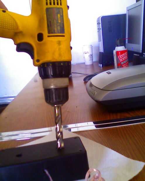 En uno de los lados largos, perforar un agujero más pequeño para el cable del altavoz.