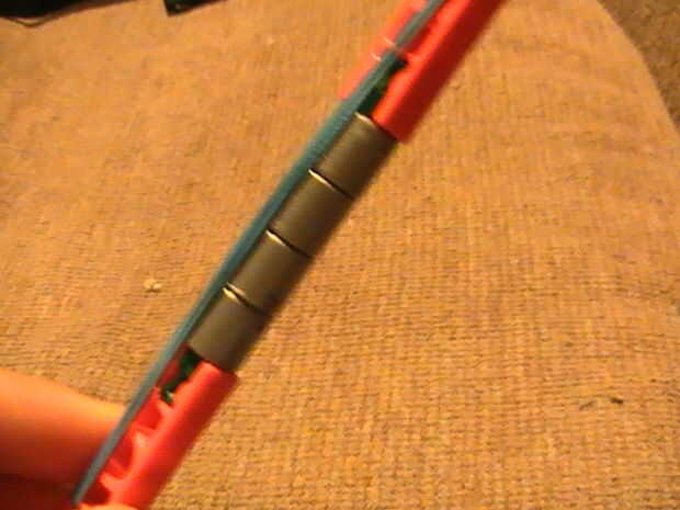 3. ahora usted sólo mantener deslizándose en tantos separadores como desee para completarla. Azules son un poco más fáciles de insertar más y le da más sprapnel. Para metralla de bono puede llenar entre los espaciadores con más barras verdes si haces suficiente espacio.