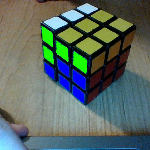 Gire el cubo de modo que se parece a las imágenes de arriba (girar la naranja dos veces)