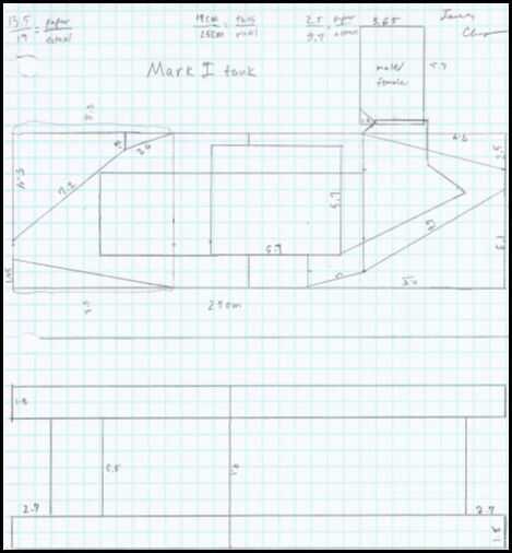 Mis diseños según los cuadros de la última etapa.  Números en el papel están en centímetros.  Recuerde siempre marcar sus piezas de corte, para que usted puede recordar lo que son en un momento posterior.