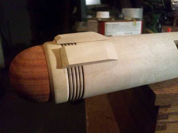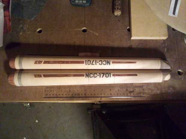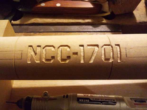 La s-curva en el extremo de popa de los motores fue cortada con la sierra. El artefacto había asegurado que las s-curvas también son perpendiculares al eje. Elementos esféricos se dio vuelta en el torno y cortar en la Sierra de cinta para que coincida con la curva s en el extremo de popa de los motores. Un surco fue tallado a lo largo de los interiores de los motores son el accesorio de un pedazo largo y delgado de nuez negra. Pequeños elementos fueron hechos de arce y nogal negro fueron agregados a los motores para dar mayor detalle. El número de registro y el perno rayas se realizaron utilizando el método de pegamento/del serrín. El número es de ébano, la raya es Padouk y el bumerán es corazón amarillo.