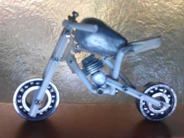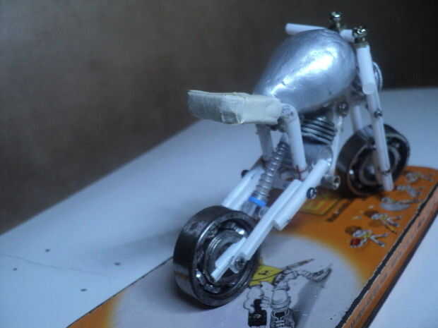 el cuerpo principal comenzó como un 2 x 4 y la forma áspera fue tallada con la navaja y refinada con una lijadora de correa/disco.Curva exterior del guardabarros delantero se formó en la lijadora de disco y fue en forma de la curva interior con cince