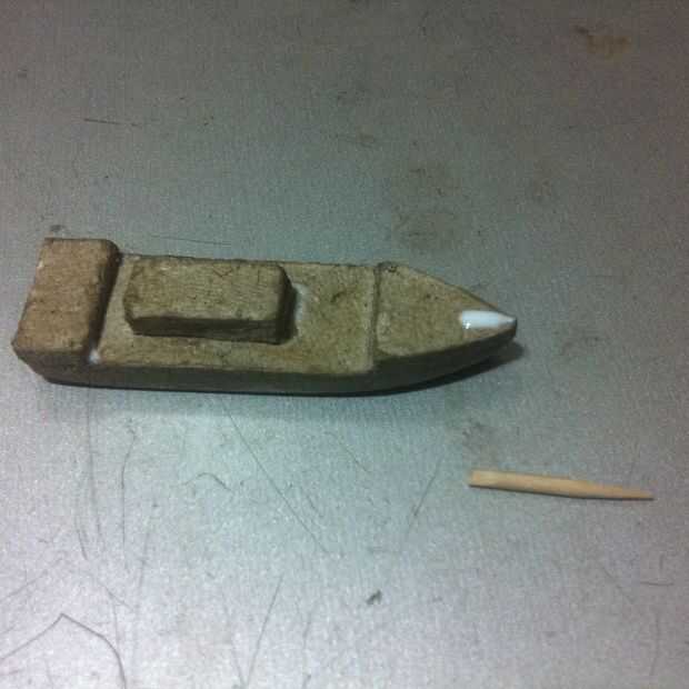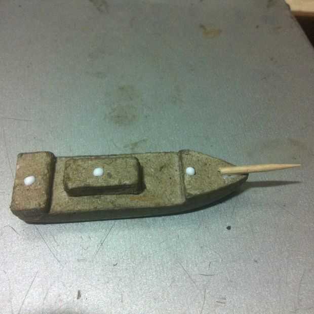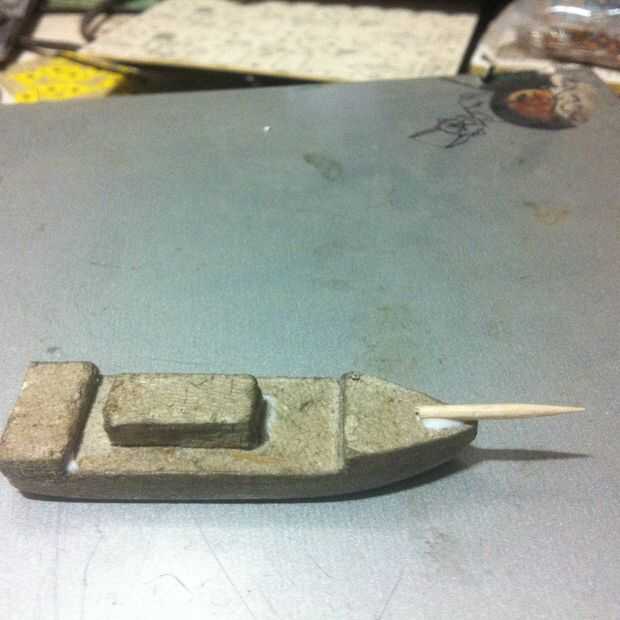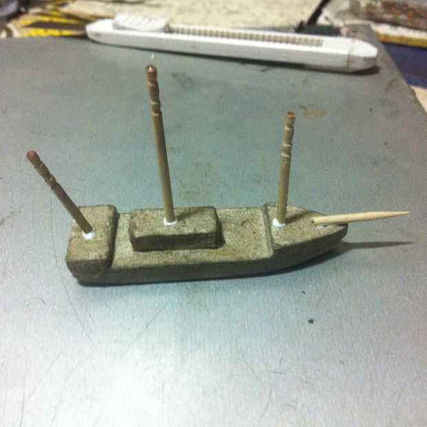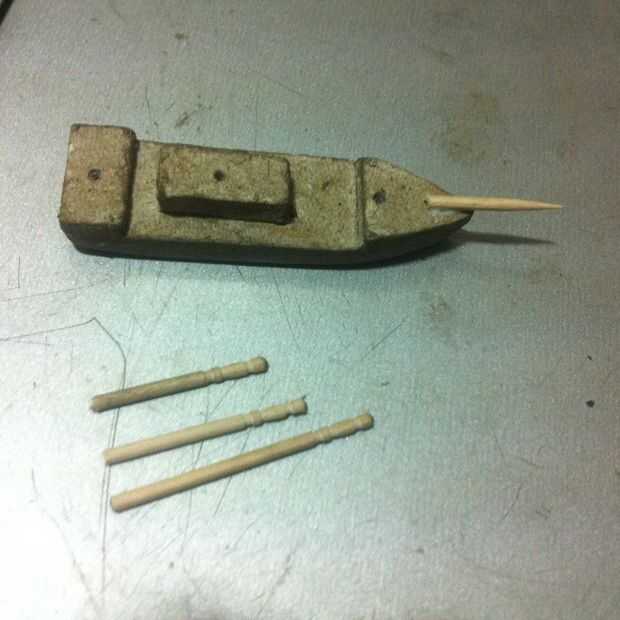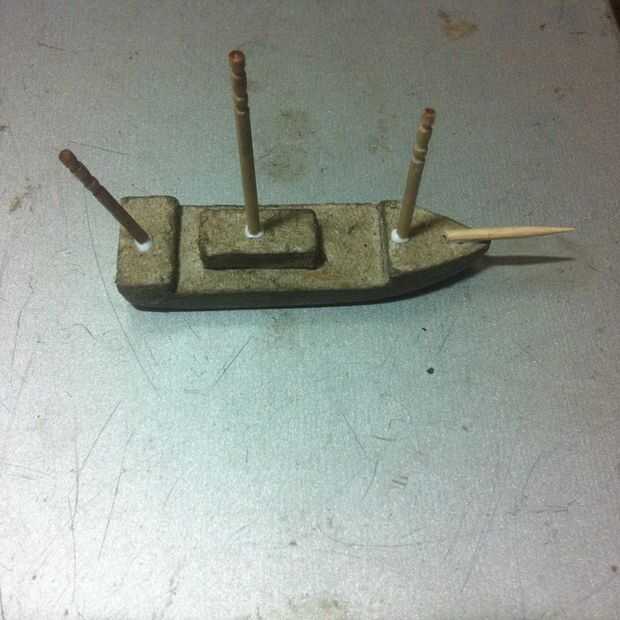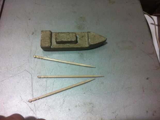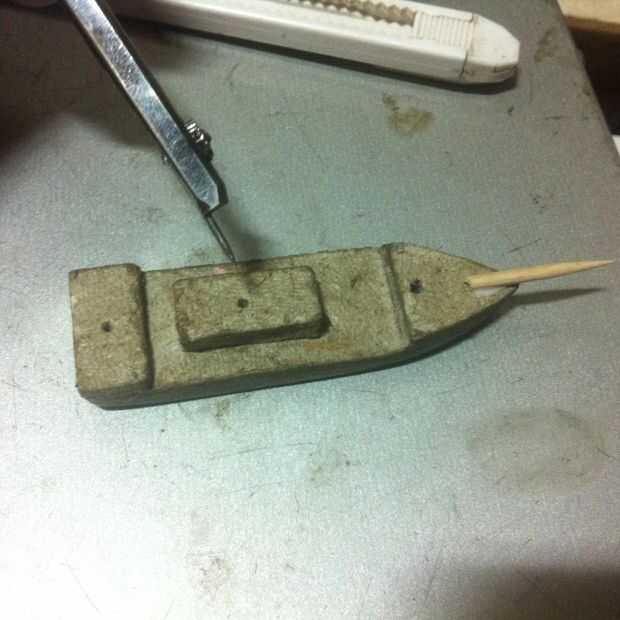 -corte de 1,5 cm desde la punta de un palillo y pegamento en el punto de la nave modelo como se muestra en la imagen.