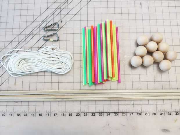 Recoged los suministros! Usted puede encontrar tacos, cuerda y mosquetones en su ferretería local, pajas en un lugar de abastecimiento del restaurante, y arte de las bolas en una tienda de artesanía o online aquí.