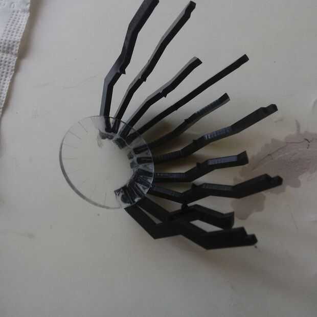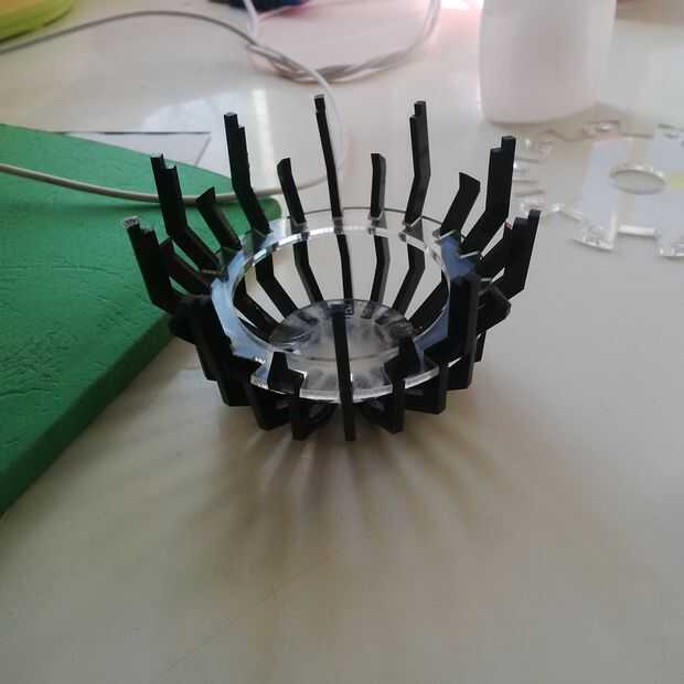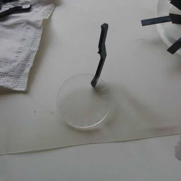 将线状的亚克力面板粘到透明的小块圆形亚克力面板上, 一个接一个。