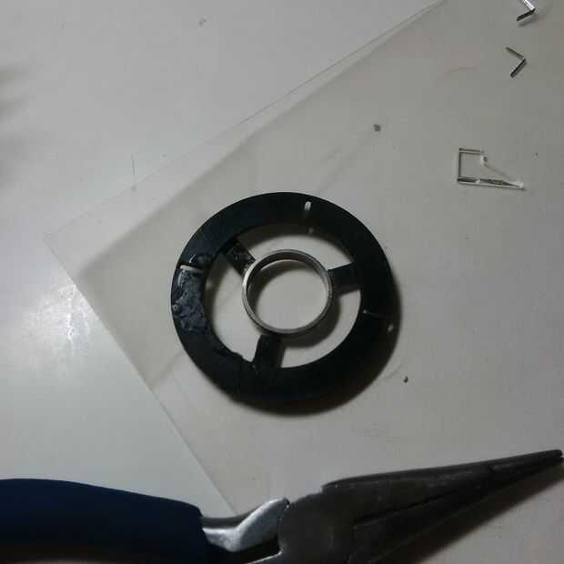 Poner el anillo de hierro dentro del vidrio de acrílico circular.