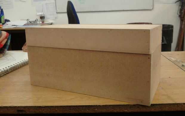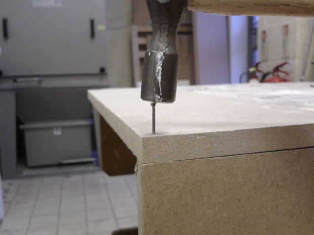 Cuando haya verificado qué piezas van donde, usted necesita montar las piezas. Opté por usar pequeños clavos y pegamento de madera para armar mi caja y la tapa, también puede utilizar tornillos para madera. Si estás usando clavos para martillo juntos, martillo los clavos parcialmente antes de montar por lo que cuando se les unen, puede puntear en sin los clavos caer hacia fuera.