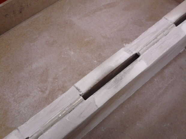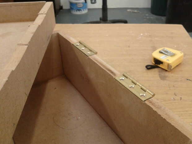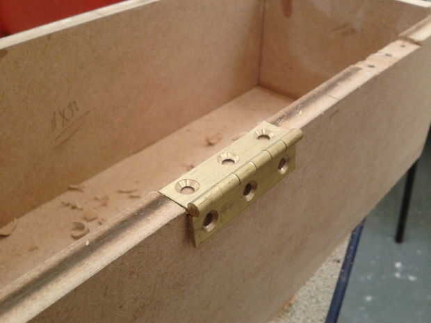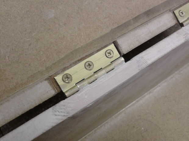 El mejor momento para aplicar las bisagras es cuando la caja y la tapa están montados, que la tapa y la caja de quedar al ras con ninguna proyección y todos los huecos han sido llenados y arena.