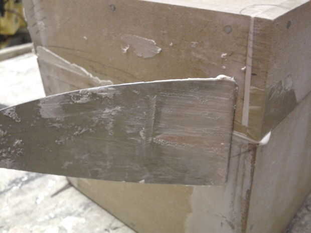 Recorte el exceso mientras que aún es medio curado con una cuchilla. Una vez que esté completamente seca, lije las zonas no deseadas.
